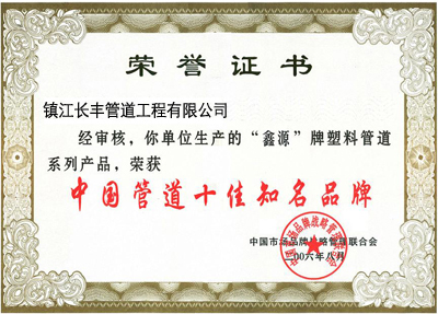 鎮江長豐管道工程有限公司是塑料管道、管件專業生產企業。位于風景秀麗素有江中明珠、水上花園之稱的長江第二大島—揚中市經濟開發區,地理位置得天獨厚,南北分別有長江大橋與大都市上海,歷史名城鎮江相連,交通便捷。 鎮江長豐管道工程有限公司創建于2001年,公司有管材生產線4臺套,其中進口生產線2臺套,管件生產設備2臺套,年生產能力近萬噸,檢測設備齊全。 鎮江長豐管道工程有限公司主要生產:一、玻纖增強聚丙烯(FRPP)管材、管件,規格:φ15--800mm;二、工程級聚丙烯(PP)管材、管件,規格:φ15--800mm;三、聚丙烯(PP-H..